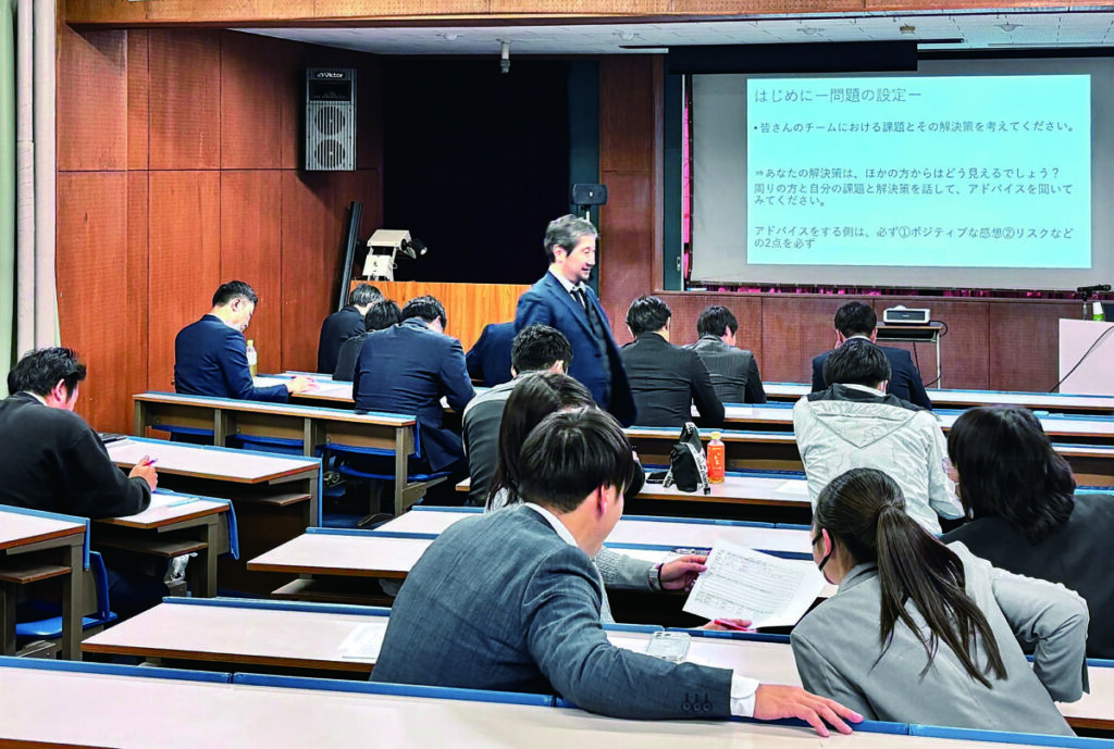 柴沼教授は、日本サッカー協会のフットサルチューターとして教育学などを援用したカリキュラム開発の活動経験を持つ。チームを「一つの生命体」と捉える考え方を示し、リーダーの役割は、目的地へ導くことであると説明。個人の「人格」と「環境」との関係性が行動に大きく影響することを指摘し、「良い結果を生むために周囲の環境を整えるオーガナイズが重要」と強調した。