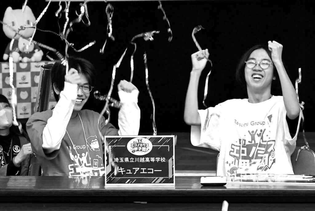 決勝は「アイドルユニットとしてファンの数を増やしながら売り上げアップをいかに目指すか」といった、経済知識と戦略が求められるゲーム形式で進行。川越高校の「キュアエコー」が栄東高校の「頭痛肩凝樋口一葉」に競り勝った。