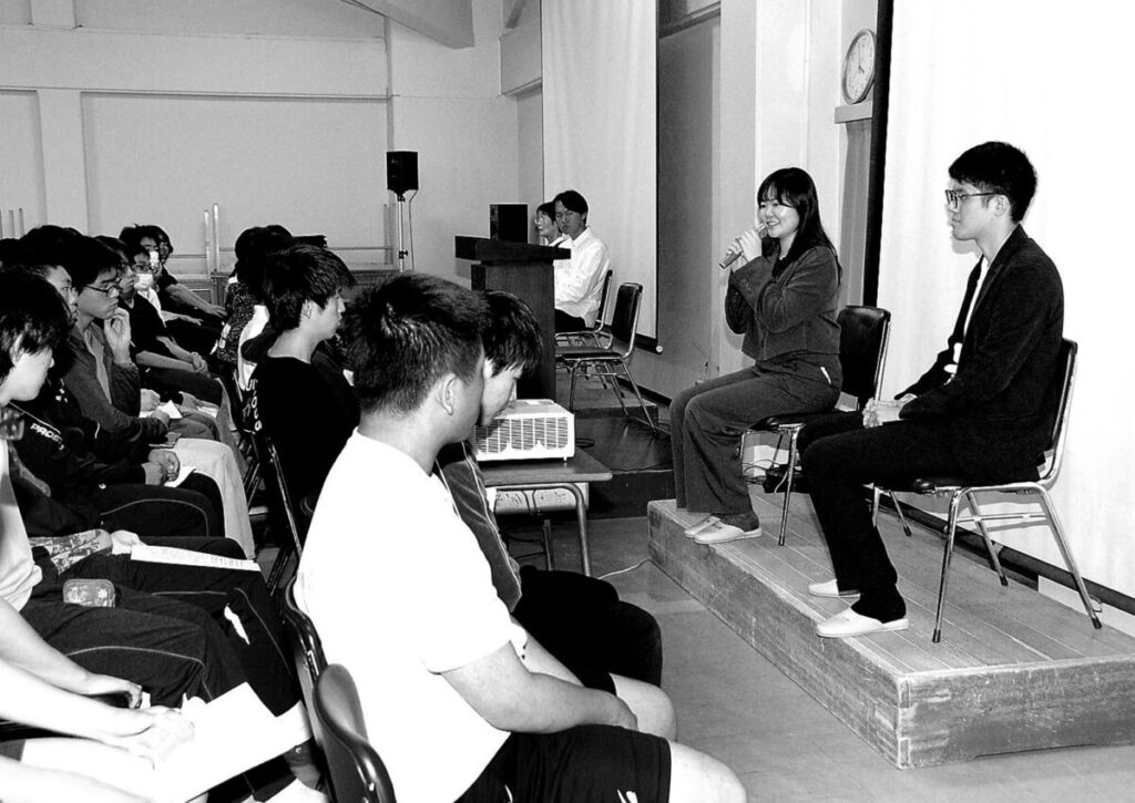 県立熊谷高校(市川京校長)は10月27日、熊谷市大原の同校で2年生の修学旅行を控えた平和学習を実施し、「熊谷空襲を忘れない市民の会」代表の米田主美さん(80)や熊谷空襲を題材に映像制作を行っている大学生らが講師として招かれた。生徒は太平洋戦争終戦前夜の1945年8月14日から翌15日未明にかけて、市街地が甚大な被害を被った地元の戦禍について知ることで、若い世代が継承する重要性を学んだ。