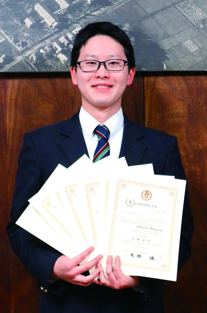 全商検定9種目で1級を取得した浪江悠人さん=13日、大宮商業高校