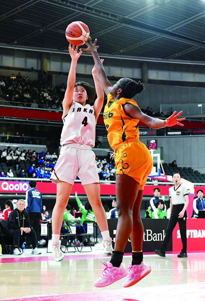 女子の埼玉栄は体を張って懸命に守ったが、点差を埋められず。留学生2人を擁する相手にゴール下の主導権を握られ、打開することができなかった。目(さっか)監督は「流れを持って来られそうだったけど、我慢し切れなかった」と悔やんだ。