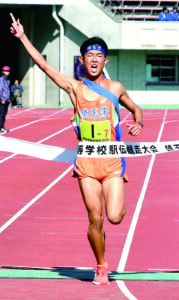 アンカーの曽我は冷静なレース運びで後続の追い上げを振り切った。残り2㌔地点で武蔵越生・原にかわされたが、「持久力勝負では勝てない。ラストスパートで勝負する」と後ろをピタリと追走。最後のトラックで捉えると、スパートをかけた。