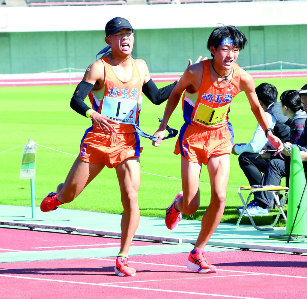 1区内山が実力を発揮する。スタートからライバル校が大きく逃げる展開に「埼玉栄が前に出ることは分かっていた。2位争いに勝とう」と冷静に対応。7月の高校総体、10月の国民スポーツ大会の5000㍍競歩で準優勝した持久力を生かし、2位でたすきをつないだ。