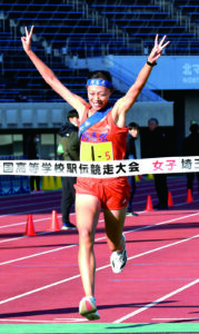 前を追える位置で走り出した根ケ山は1㌔付近で首位に立った。7月の全国高校総体では800、1500㍍で出場しスピードが最大の武器。2区(3㌔)で自身の強みを発揮し「4位でたすきをもらっても焦りはなかった」と自信に満ちあふれた走りだった。6区まで5人連続区間賞の走りで、リードを広げた。