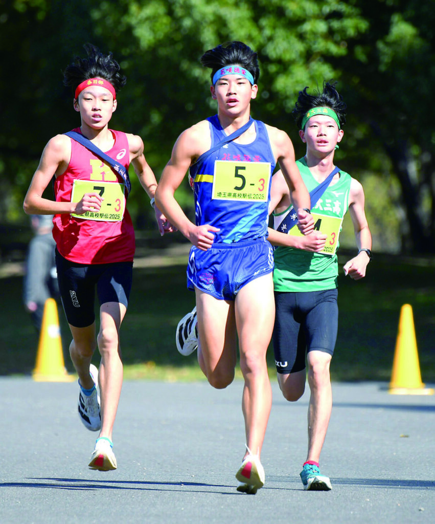 1区内山が実力を発揮する。スタートからライバル校が大きく逃げる展開に「埼玉栄が前に出ることは分かっていた。2位争いに勝とう」と冷静に対応。7月の高校総体、10月の国民スポーツ大会の5000㍍競歩で準優勝した持久力を生かし、2位でたすきをつないだ。