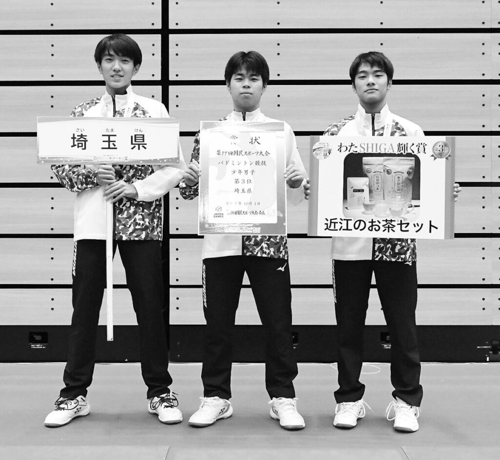 バドミントン 少年男子で3位に入賞した埼玉の(左から)五十田敦晴、山脇弘奨、山崎琉生=滋賀ダイハツアリーナ