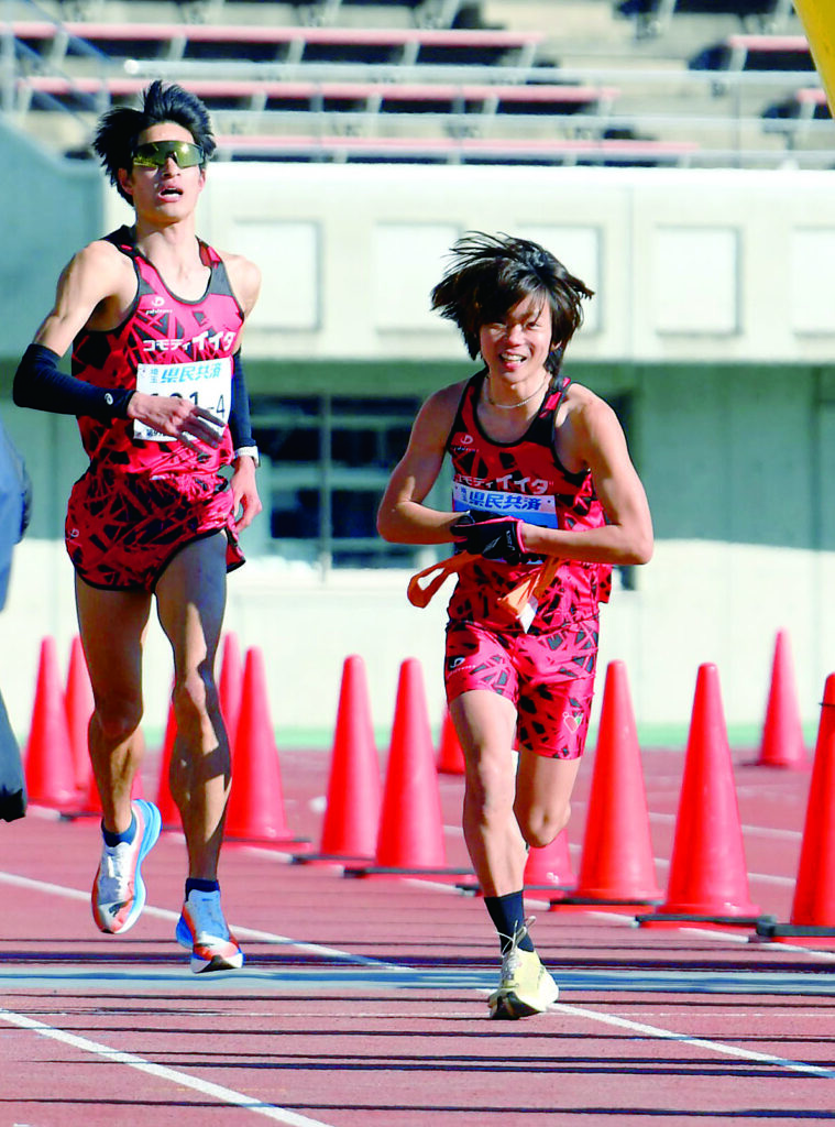 1区の臼井が2位と1秒差の3位で走り切ると、2区市村は早々に1人を抜き、先頭のすぐ後ろにつけた。「思い通り。追える位置でつないでくれた」とラスト1㌔地点でスパートをかけてトップに躍り出た。