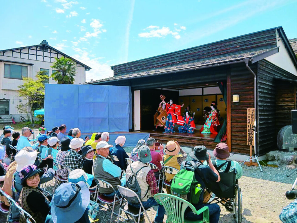 18日は町内の観光交流館の屋外に設けられている舞台で、小鹿野歌舞伎保存会(山本正実会長)が「寿曽我対面工藤館之場」を披露した。鎌倉時代、曽我兄弟が父の敵討ちをする物語で、曽我十郎祐成役は小鹿野高校3年の村上快さん(17)が演じた。村上さんは10歳から歌舞伎に取り組んでいるが、春祭りで演じたのは初めてとあって「いつもと違う舞台で緊張した。大人になっても歌舞伎を続けたい」と話していた。