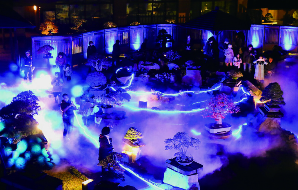 同館の盆栽庭園に飾られた約60鉢の盆栽がライトアップによって浮かび上がる。2階のテラスには飲食コーナーが設けられ、テラスから庭園を一望することができる。関連イベントとして、庭園には大宮光陵高校の生徒が盆栽をテーマに作成した水彩画が展示されている。