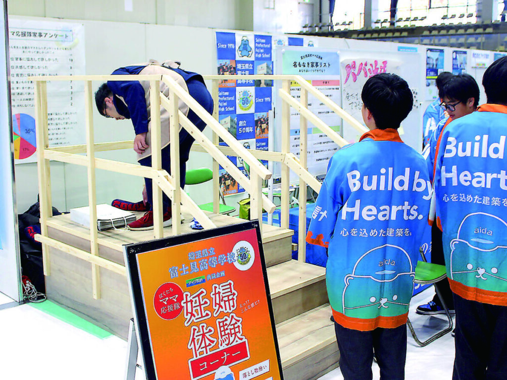 住宅メーカーのアイダ設計(上尾市、會田貞光社長)は同市の市民体育館周辺で2日間、開催した「第50回あげお産業祭」で、県立富士見高校(富士見市、池田泰校長)と組んで産学協働ブースを出展した。ブースは男子高校生が中心となり提案した「妊婦体験会」で地域企業と高校生が連携し、社会課題を発信する機会となった。