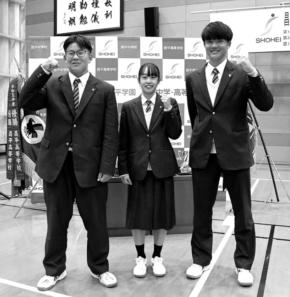 杉戸町の昌平中学・高校は18日、同校で年末年始にかけて全国大会に出場する選手たちへ向けた壮行会を行い、生徒ら約1800人がエールを送った。