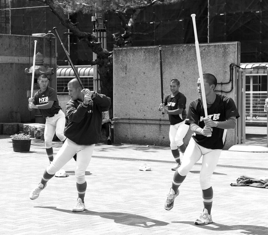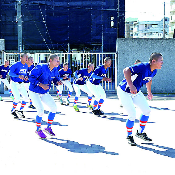 トレーニングを行う花咲徳栄の選手たち=26日午後、兵庫県尼崎市内の高校