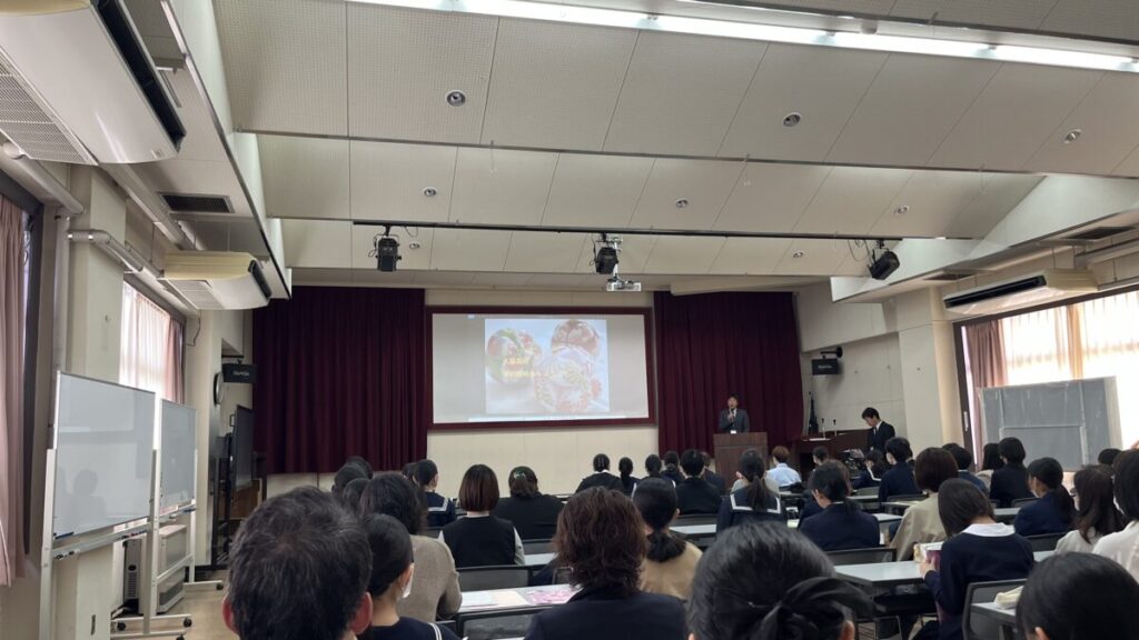 続いて生徒会長が生徒代表として登壇し、「勉強・部活・行事に全力で取り組める」という同校の良さを紹介しました。また、異性の目を気にせずに自分の個性を表現し、気兼ねなく友達と趣味を共有できるといった、女子校の利点についても話しました。