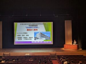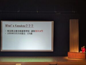 春日部高校は、生徒によるプレゼンテーションを行い、学校の歴史や日常生活を紹介しました。