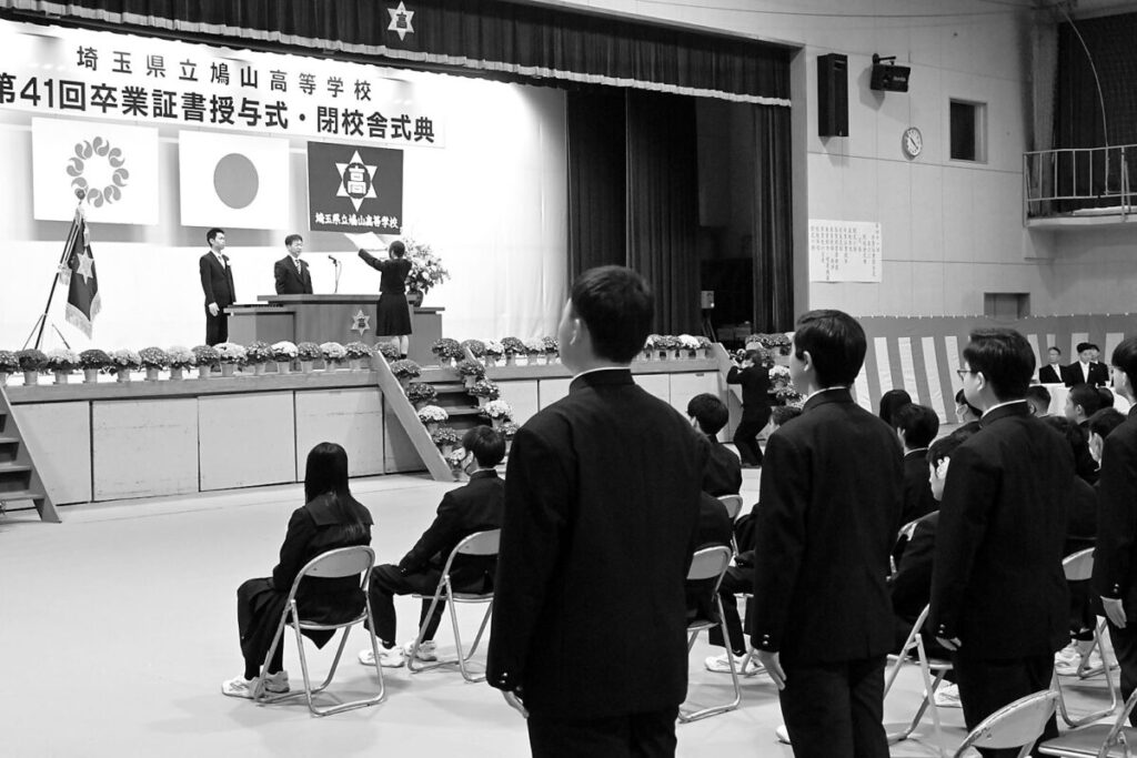 「卒業の言葉」を述べた生徒会長の広沢美羽さんは「今日は鳩山高校にとって終わりの日であり、越生翔桜高校としての始まりの日。私たちにとって高校生活の終わりの日で、これからの人生の始まりの日。『終わりという始まりの日』なので『さよなら』は言いません。また会いましょう」と締めくくった。